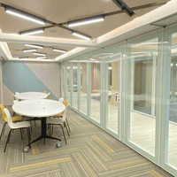 Semi-automatic type. Double-layer tempered glass with hidden frame – one of the narrowest frame glass screens on the market. Combines aesthetics, transparency, sound insulation, and spatial flexibility. Optional built-in blinds. Ideal for offices, conference rooms, clubs, shopping malls, hotels, airports, and similar venues.